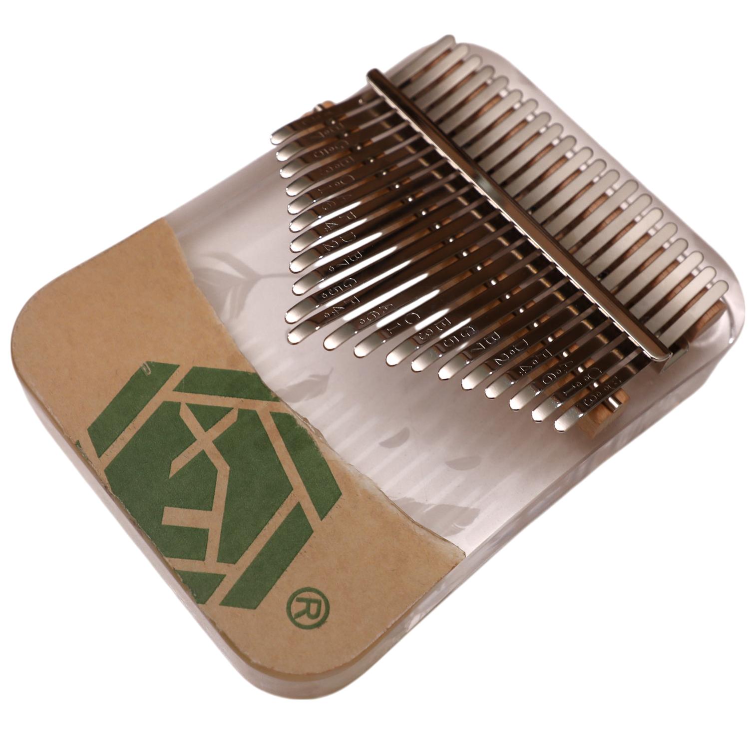 Experience pure, bell-like sound with this 21-key kalimba from the Feather Series. Crafted from transparent acrylic for a sleek, modern look and crystal-clear tones. Precisely tuned for smooth playability across a wide tonal range. Features an elegant feather design for added visual charm. Includes a sturdy carrying box for protection and easy transport.