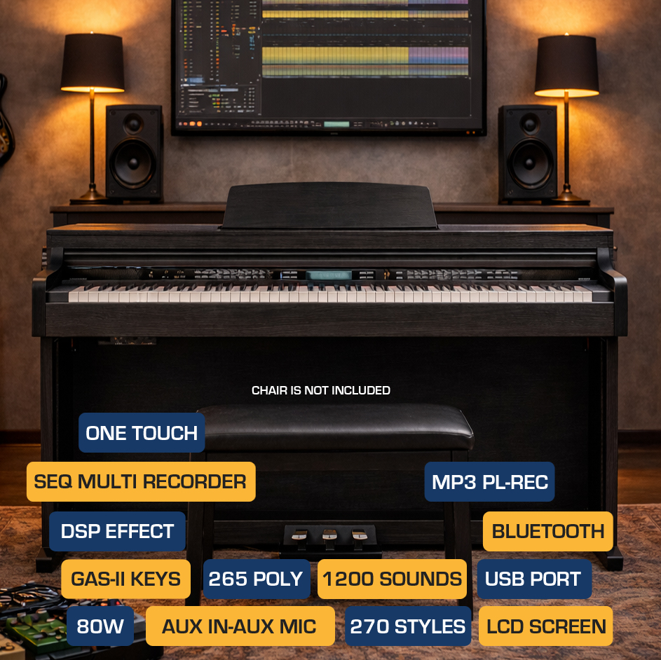 PITCH ADJUSTMENT: Transpose • Octave • Tuning | METRONOME: Yes | TEMPO: 30-280
